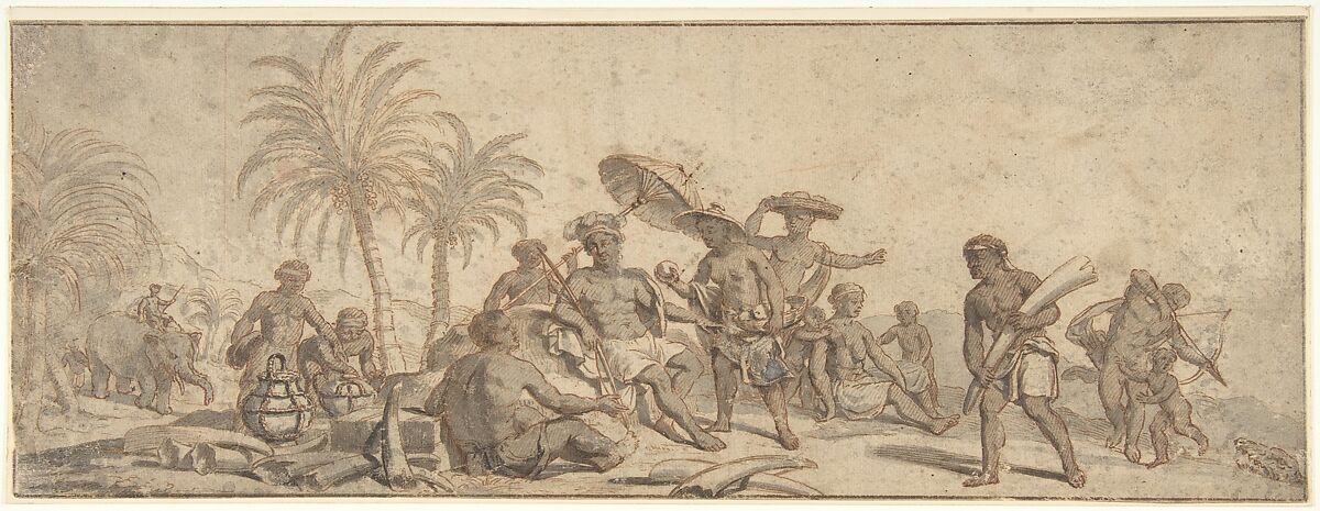 - Medium:Pen and brown ink, brush and gray wash, traces of red chalk; framing lines in pen and brown ink