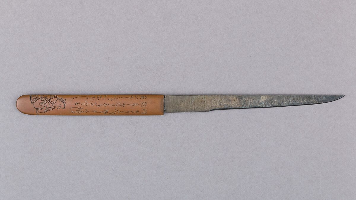 A kozuka is a handle of a by-knife that is part of a sword mounting. It is kept in a slot on the reverse of a katana scabbard, often with a matching kōgai (hairdressing tool).