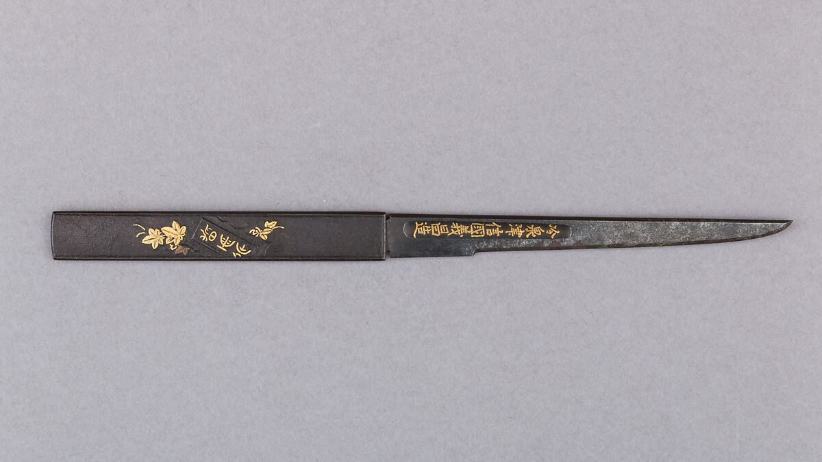A kozuka is a handle of a by-knife that is part of a sword mounting. It is kept in a slot on the reverse of a katana scabbard, often with a matching kōgai (hairdressing tool).