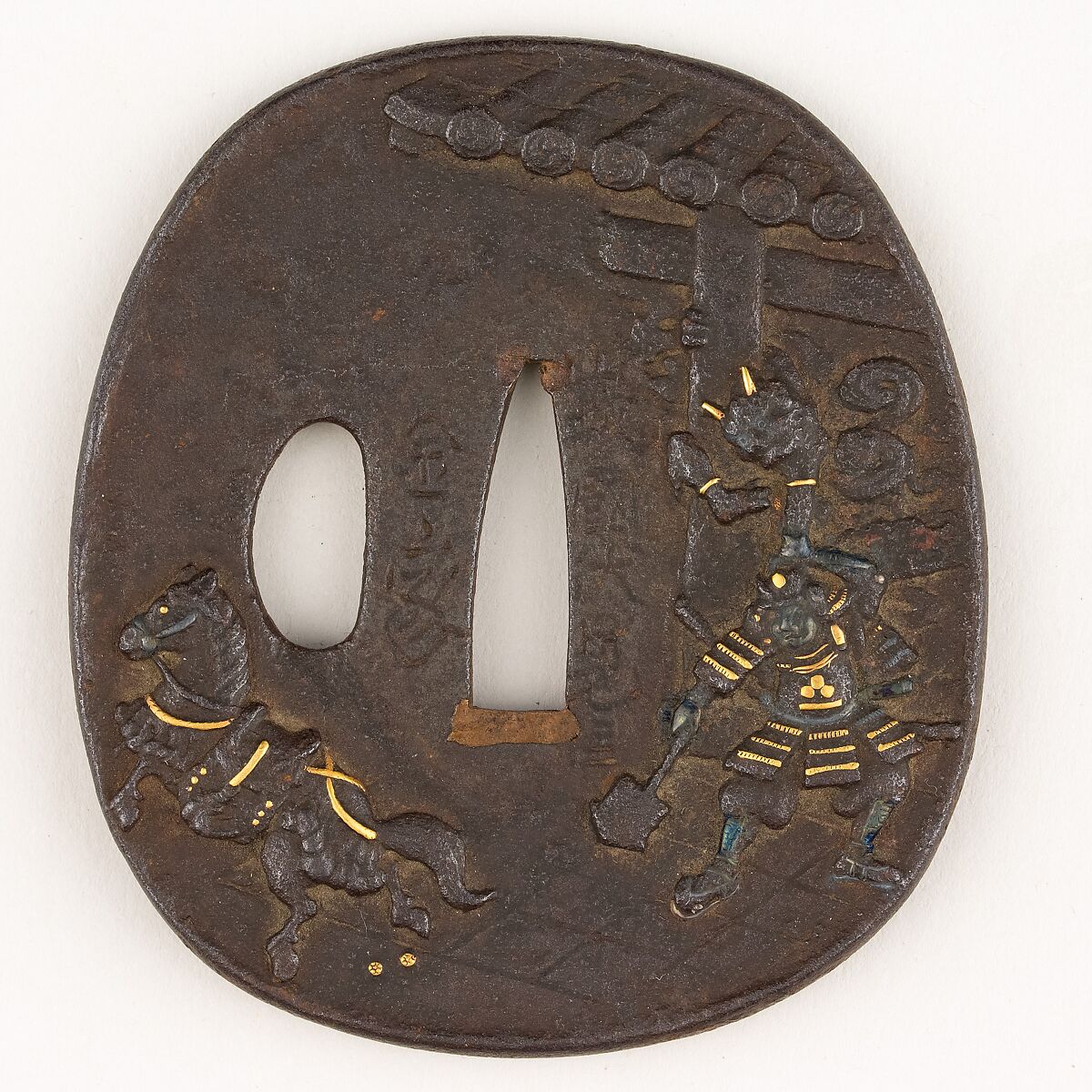 A tsuba is a sword guard and part of a sword mounting. It is mounted between the sword’s blade and grip to protect the user’s hands.