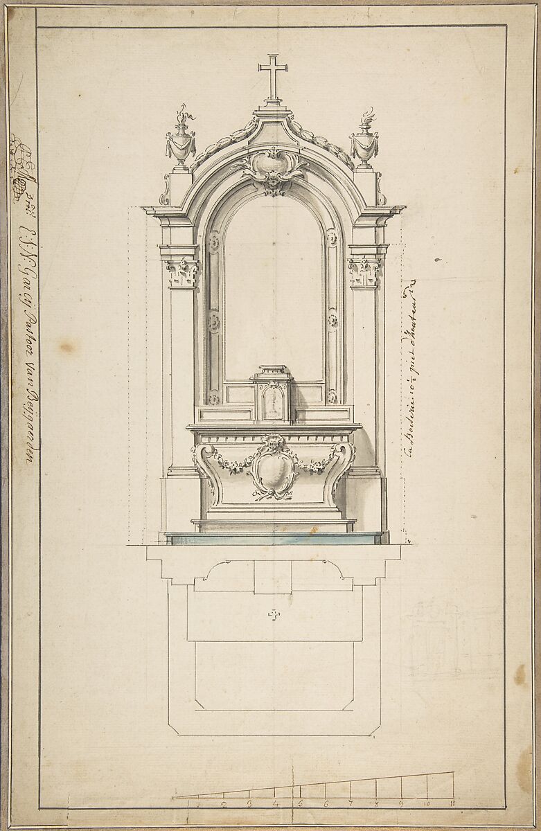 - Title:Design for an Altar, with Elevation and Ground Plan