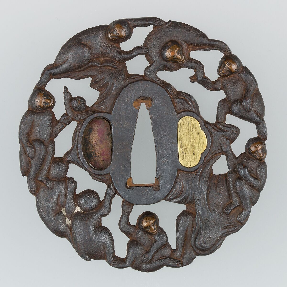 - Title: Sword Guard (Tsuba) Depicting Group of Monkeys in a Peach Tree (猿猴摘桃透鐔)