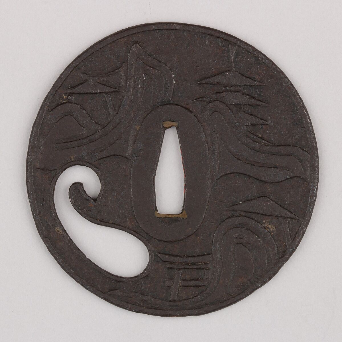 A tsuba is a sword guard and part of a sword mounting. It is mounted between the sword’s blade and grip to protect the user’s hands.