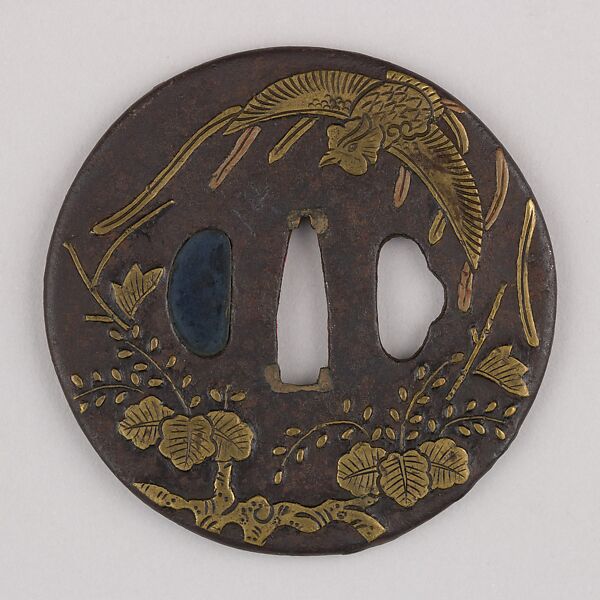 A tsuba is a sword guard and part of a sword mounting. It is mounted between the sword’s blade and grip to protect the user’s hands.