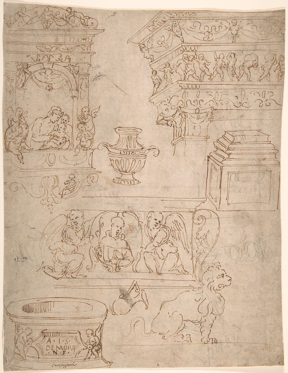 - Title:Sheet of Studies of Sculptural Elements and Architectural Ornaments