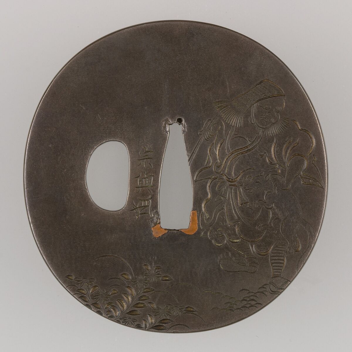 A tsuba is a sword guard and part of a sword mounting. It is mounted between the sword’s blade and grip to protect the user’s hands.