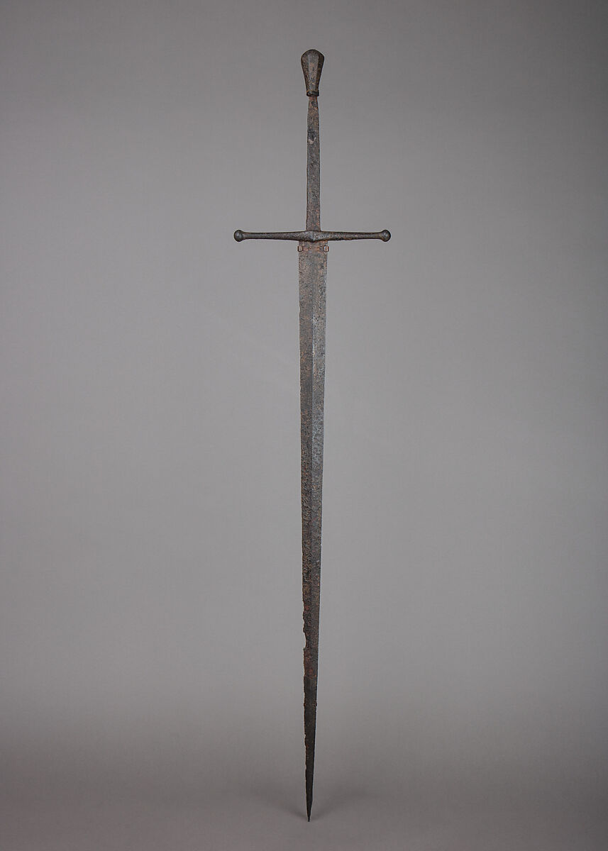 The sword is similar to those that are associated with the so-called Castillon find—an important group of eighty swords said to have been found in two casks recovered in 1976 from the wreck of a fifteenth-century barge in the river Dordogne, near the town of Castillon-la-Bataille, close to where the battle of Castillon, the last battle of the Hundred Years War, was fought in 1453. Approximately four two-handed swords associated with the Castillon find are known, the most notable example preserved in the Royal Armouries in Leeds (acc. no. IX-1787).