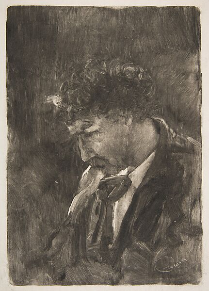 Corwin created this monotype portrait of Whistler in Venice. The young painter belonged to the "Duvenck boys" (named after their leader Frank Duveneck), a group based in Mumich who traveled to Italy in the summers (others were John White Alexander, Otto Henry Bacher, Robert Frederick Blum, George Edward Hopkins, Harper Pennington, Julius Rolshoven and Theodore M. Wendel). In 1789-80, Corwin met Whistler in Venice. The older artist happily accepted the group's admiration, visted them in their rooms in the Casa Jankowitz on the Riva San Biagio in Castello, sketched out the windows and discussed his work.