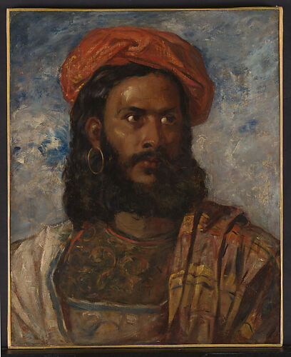 In this vigorous, vibrant study, William James Müller (a British painter of Prussian descent) captured the appearance of a young man he encountered on his travels in Lycia, in southwestern Anatolia, where the artist journeyed with the archaeologist Charles Fellows in the early 1840s. Müller applied loose, broad, wet washes to his thick, textured artist's board with some rapidity, forming the sky with fluid strokes of blue and capturing the appearance of an orange tree with a few succinct circles of bright fruit. Indeed, Müller appears to have slowed his hand only to describe the figure's distinctive shirt, a vivid patchwork of striped fabrics in ocher, purple, and red.