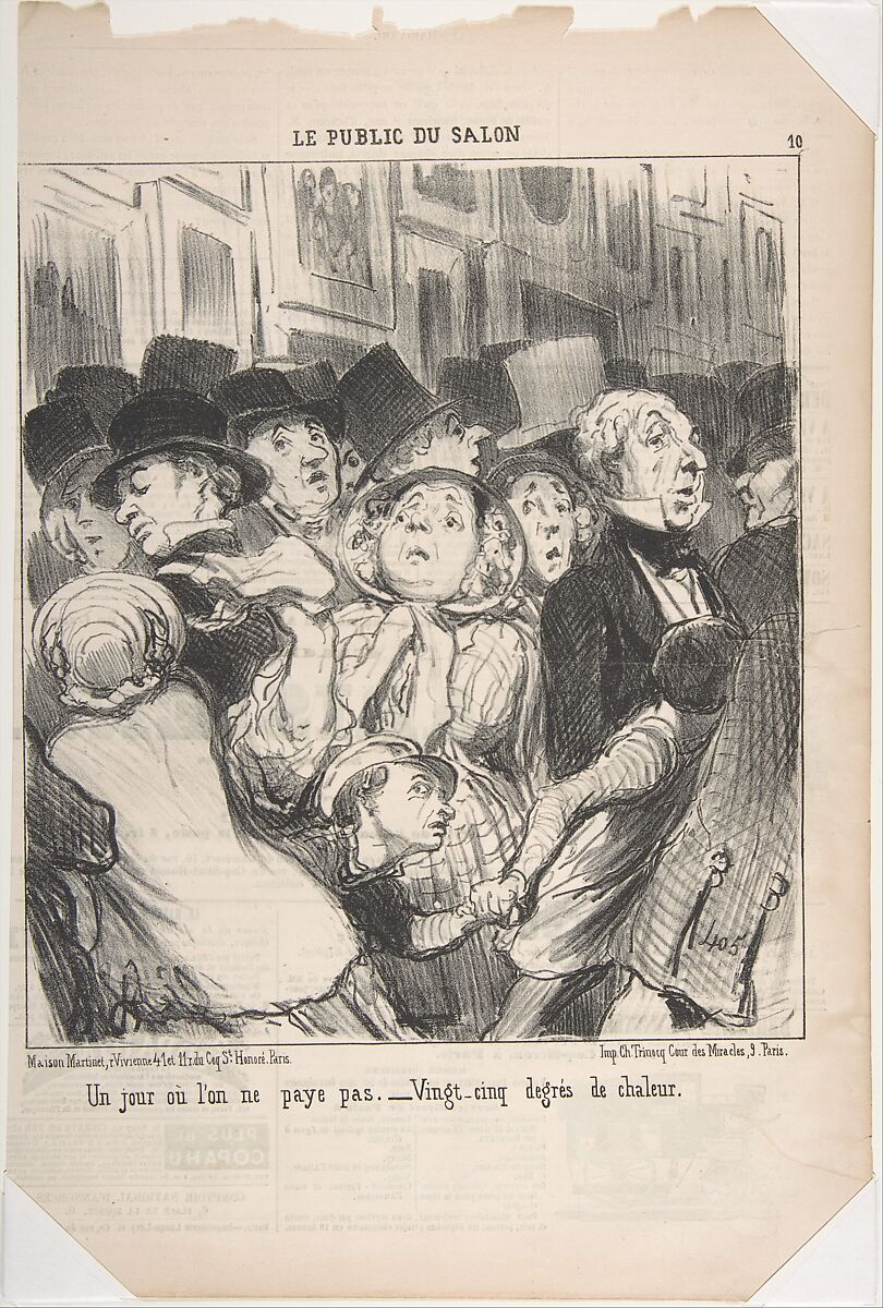 - Title: A Day When You Do Not Pay–Twenty-Five-Degree Heat (Un jour ou l'on ne paye pas. Vingt-cinq degres de chaleur ), from Le Public du Salon, published in Le Charivari, May 17, 1852