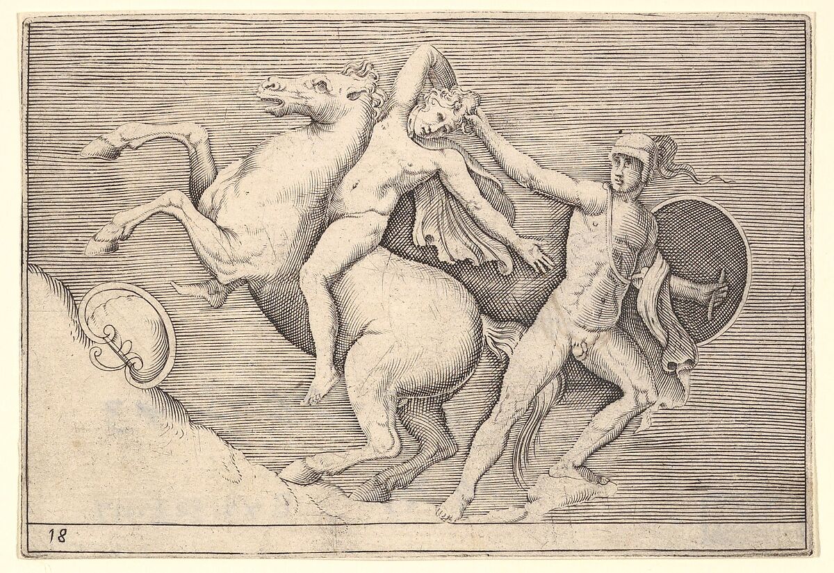 Warrior Pulling a Rider from His Horse, from "Ex Antiquis Cameorum et Gemmae Delineata/ Liber Secundus/et ab Enea Vico Parmen Incis"