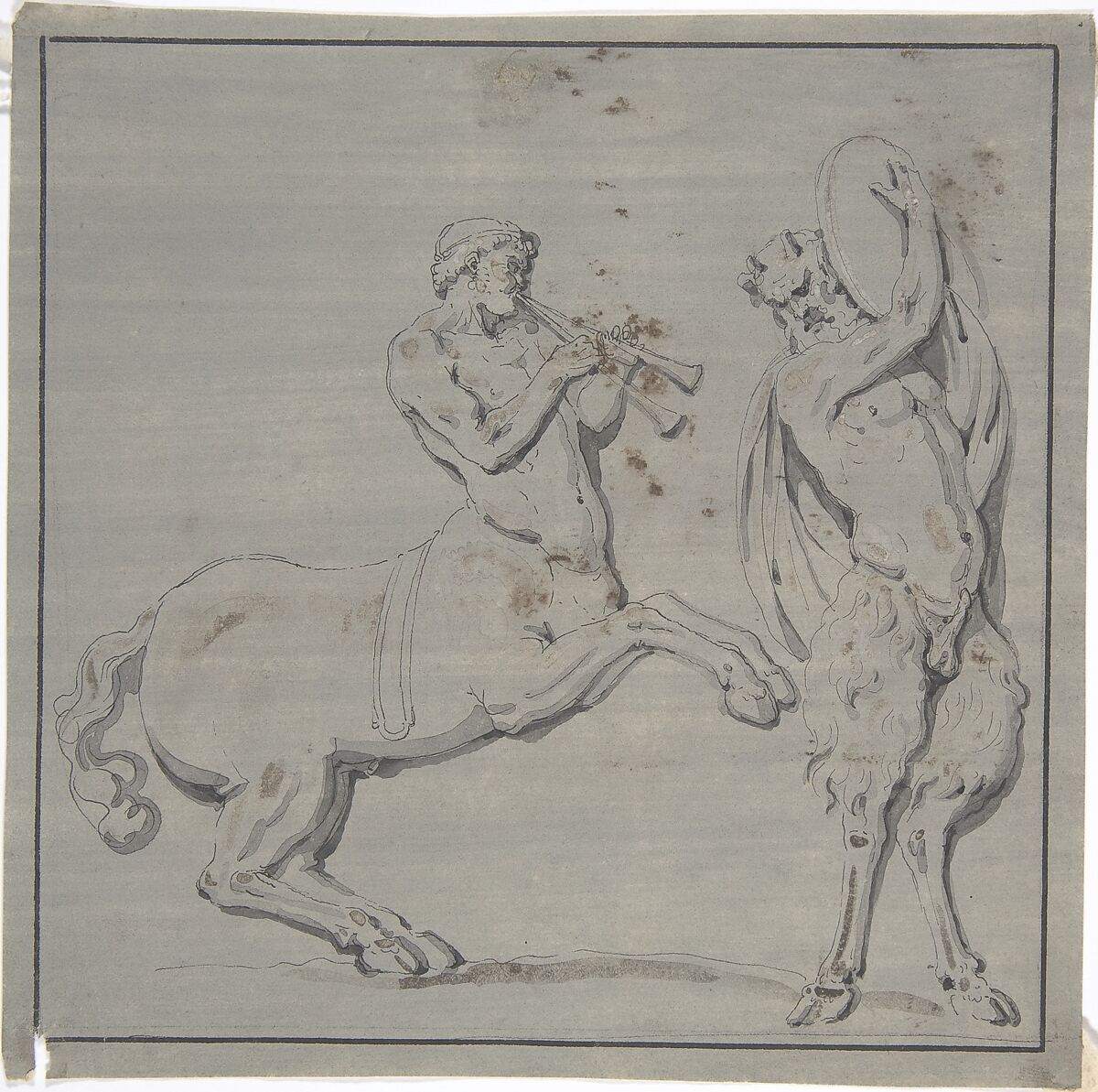 - Title:Bacchic Scene of Centaur Playing Horns and Satyr with Drum