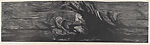 Although Baskin became known for his striking figurative imagery, The Sea represents one of his more abstract depictions. He reproduced this print for the book Voyages, a series of illustrations that accompanied poems by the modernist American writer Hart Crane. In that text, Crane employed sensuous oceanic imagery to muse on a beloved paramour, now understood to be the Danish sailor Emil Opffer. Language such as "fresh ruffles of surf" and "ribboned water lanes" recalls the dynamic swirls and streaks of The Sea. Baskin may have found an extra layer of meaning in Crane’s death, whereby the poet drowned in the Gulf of Mexico in an alleged suicide following a failed advance on a boatsman.