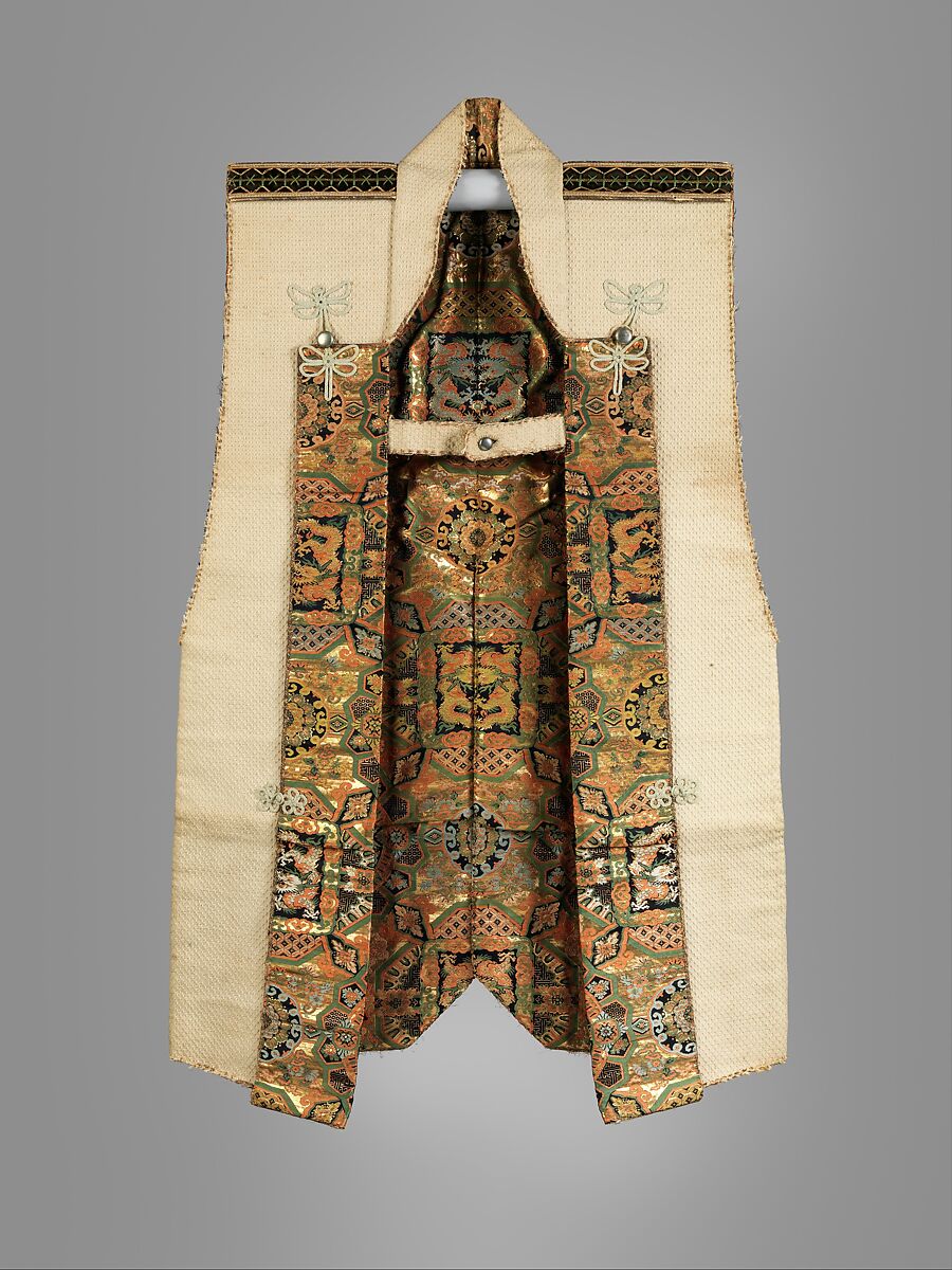 According to a label attached to it, this surcoat belonged to Tokugawa Yoshinobu (1837–1913), the last Shogun (military ruler) of Japan (reigned 1866–68). He may have worn it during his defeat at the battle of Toba Fushimi (January 2, 1868), a watershed event in the transition from feudalism and the Tokugawa shogunate (1603–1868) to the Meiji era and the beginnings of modern Japan.