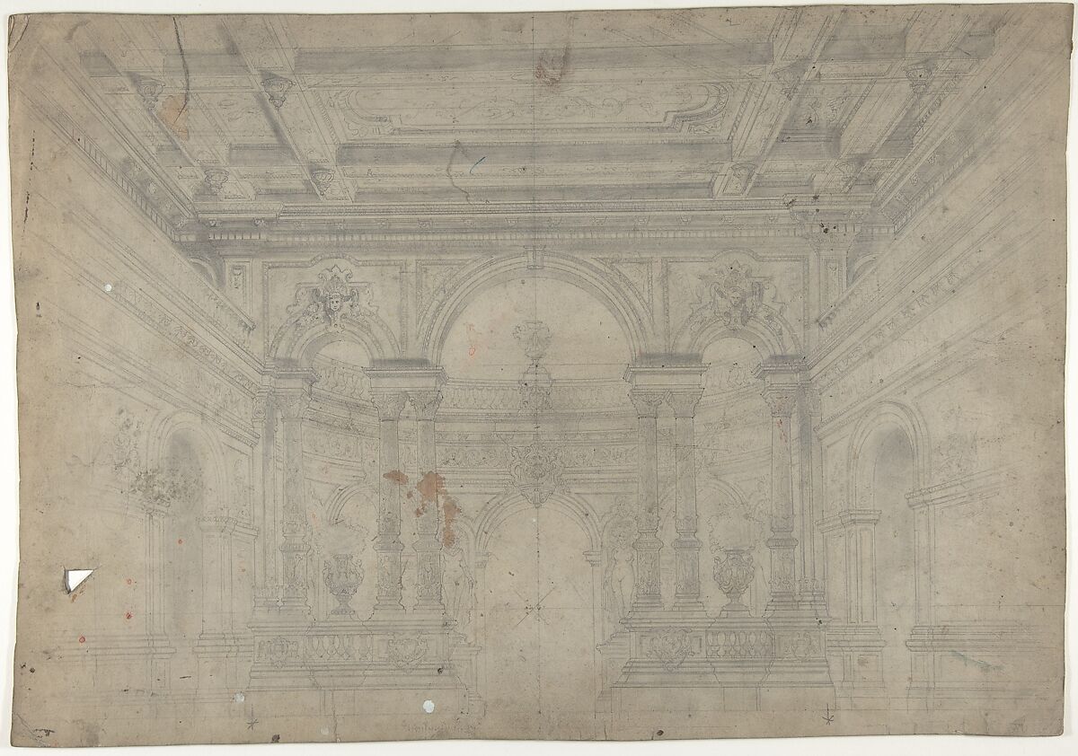 - Title: Design for a Stage Set at the Opéra, Paris: Interior with Coiffered Ceiling