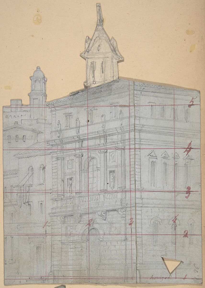 - Medium:Graphite; framing lines in pen and red ink