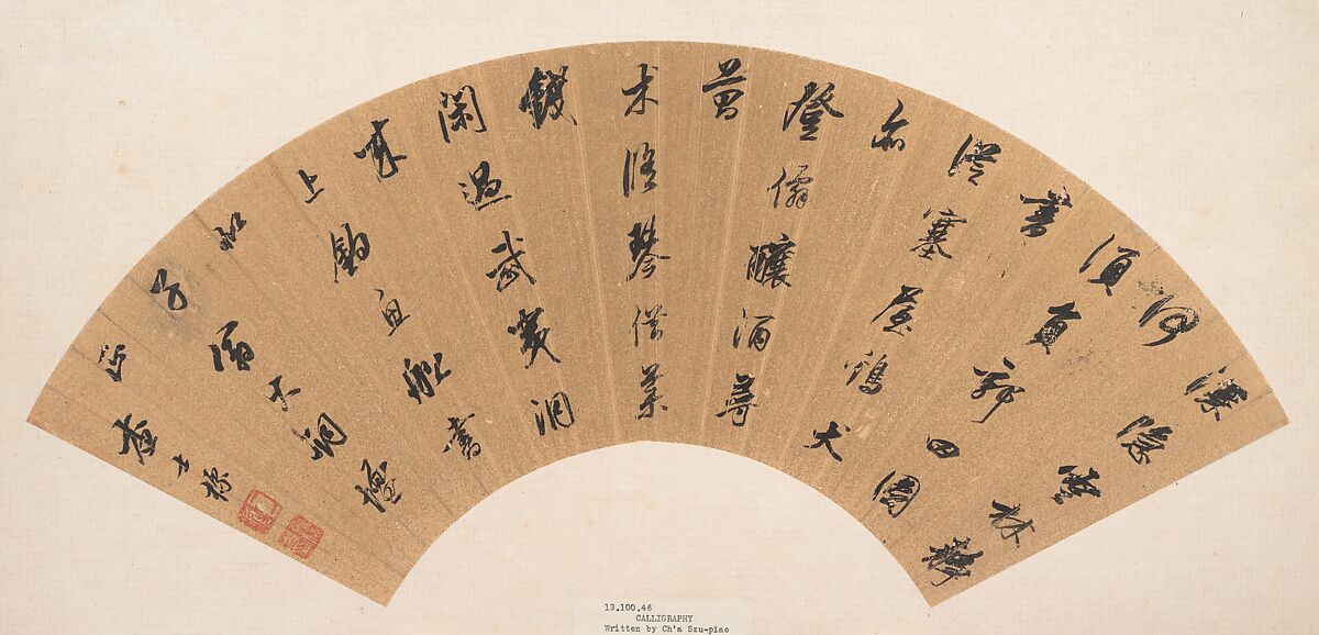 - Medium: Folding fan mounted as an album leaf; ink on paper