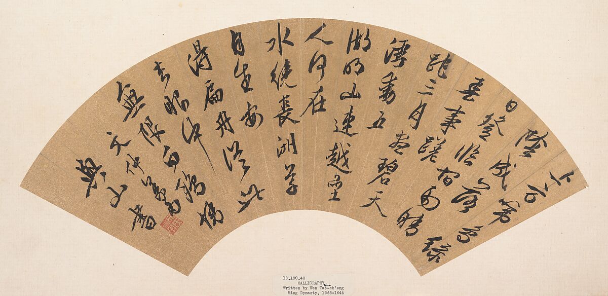 - Medium: Folding fan mounted as an album leaf; ink on paper