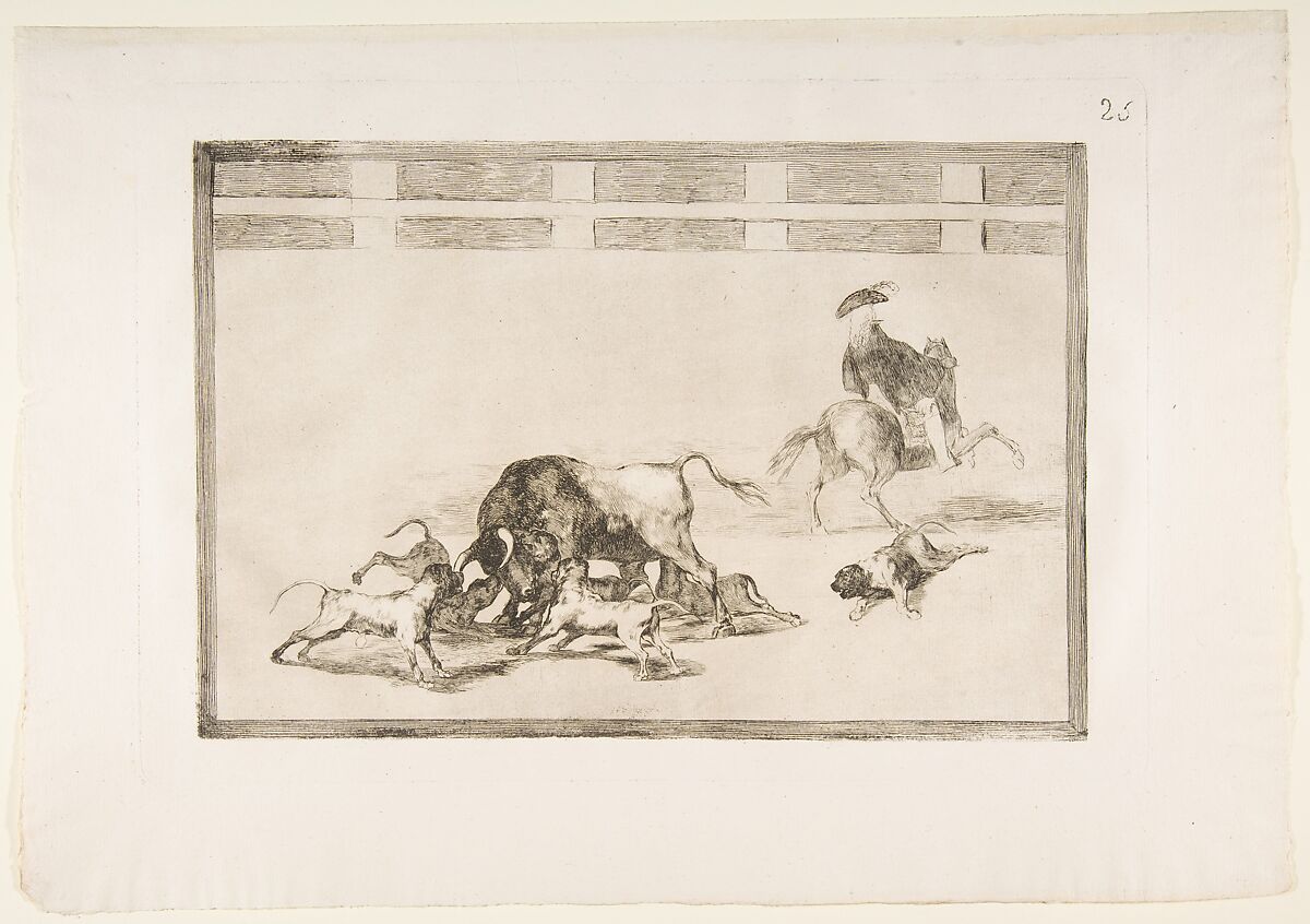 - Title: Plate 25 from "La Tauromaquia": They loose dogs on the bull