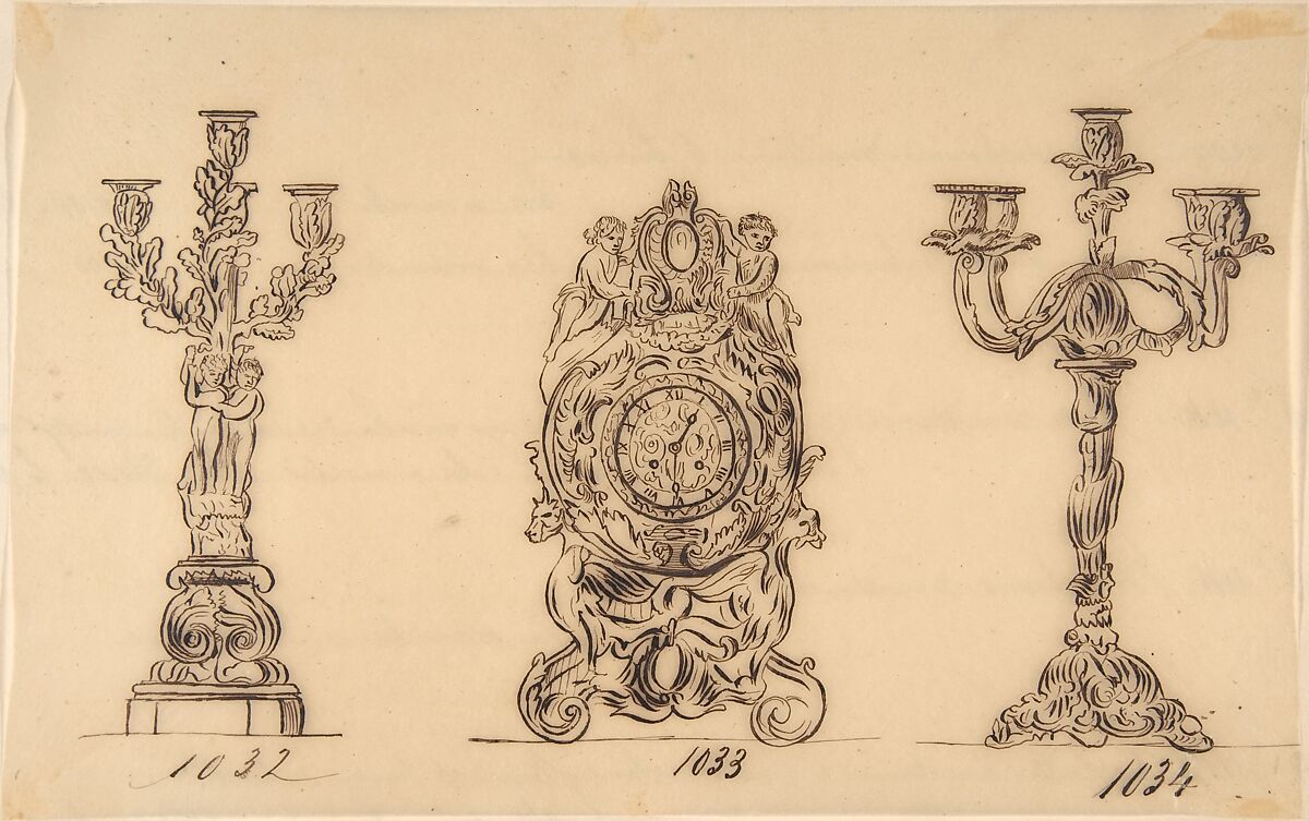 - Title:Designs for a Clock and Two Candelabras
