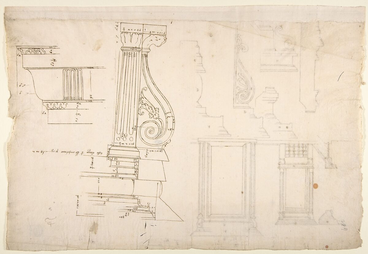 - Title: Palazzo Massimo alle Colonne, fireplace, details; Unknown, cornice, profile (recto) Palazzo Massimo alle Colonne, door and window, details (verso)