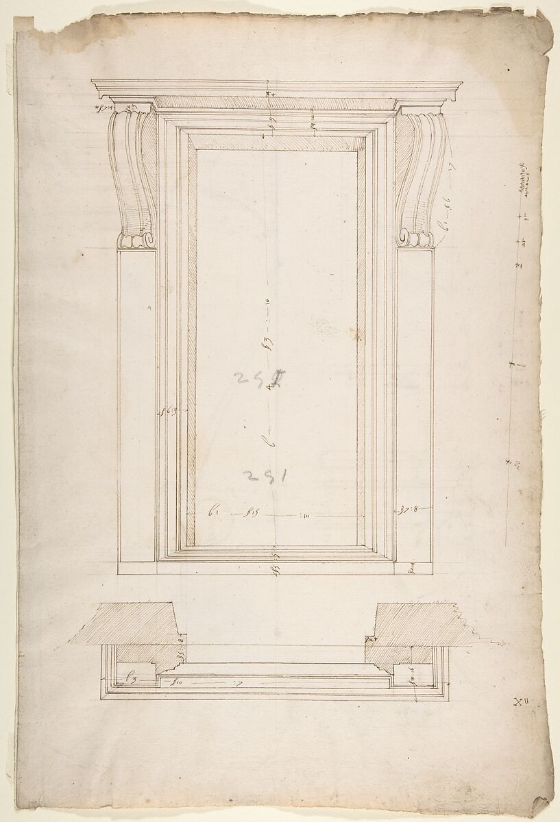 - Title: San Lorenzo, New Sacristy, portal, plan; elevation (recto) San Lorenzo, New Sacristy, portal, details (verso)
