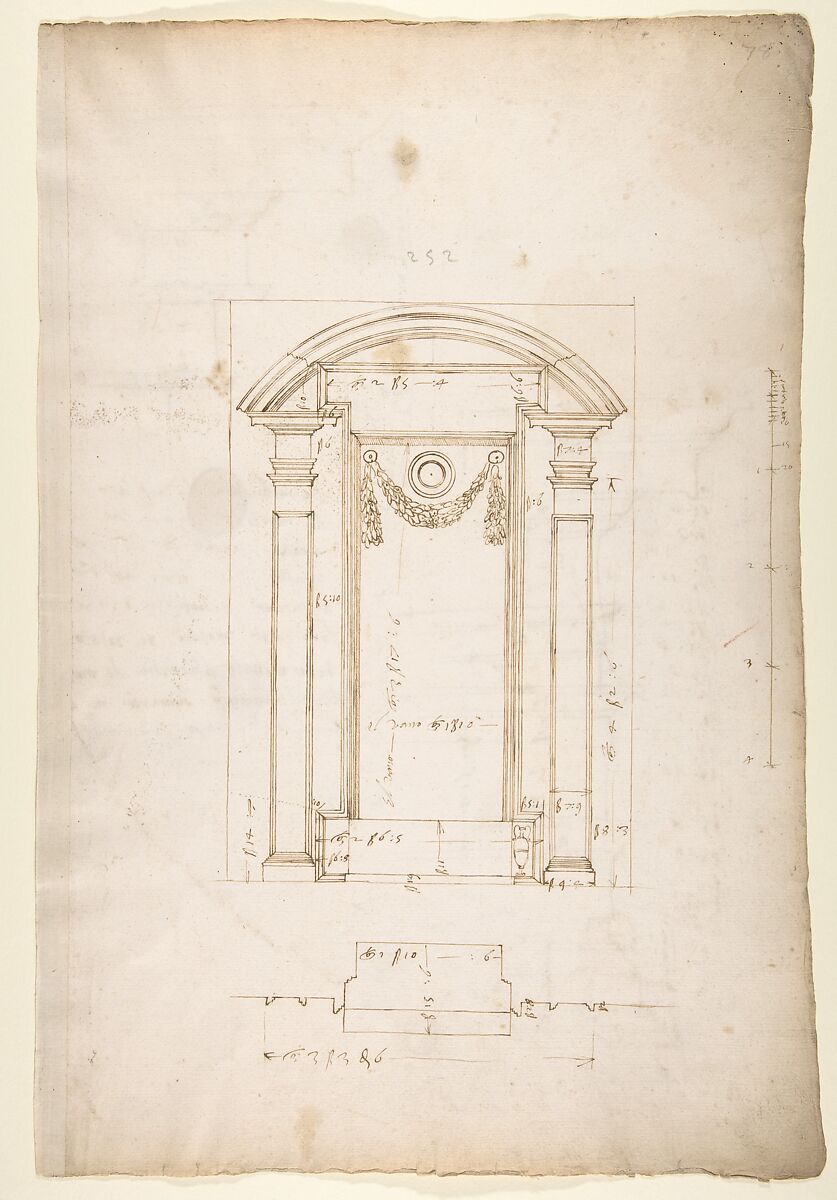 - Title: San Lorenzo, New Sacristy, niche frame, tabernacle, plan and elevation (recto) San Lorenzo, New Sacristy, entablature, cornice, and base of niche, profiles (verso)