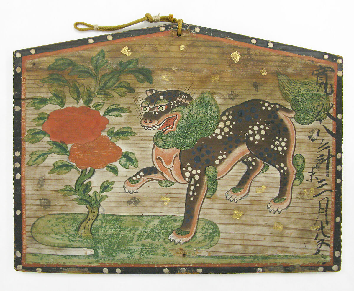 - Title: Ema (Votive Painting) of a Chinese Lion and Peony Tree by Flowing Water