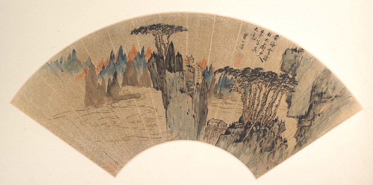 - Medium: Folding fan mounted as an album leaf; ink and color on gold paper