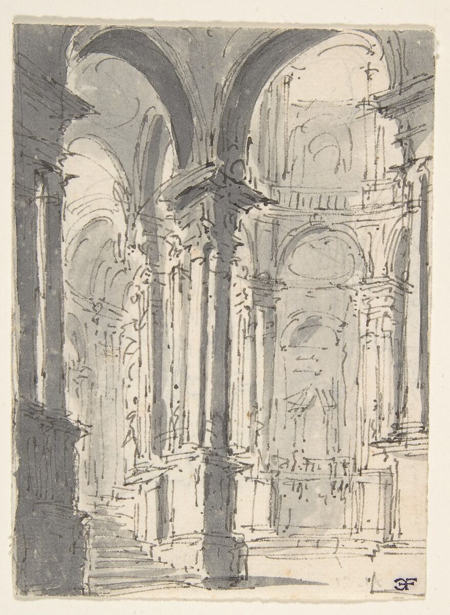 - Title: Design for Stage Set with a Circular Arcade (recto); Sketch for Stage Set with Circular Arcade (verso)