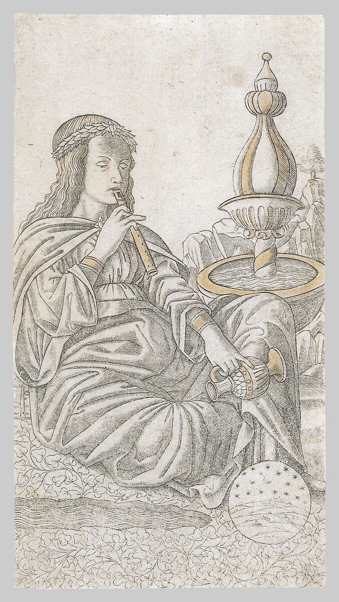 The fifty engravings of the so-called Tarocchi di Mantegna were not designed by the Mantuan artist Andrea Mantegna and do not form a true tarot deck, for they lack suits, number cards, and face cards. Possibly intended as a didactic game or booklet, the series of images illustrates the hierarchy of the universe, from the lowly beggar to the celestial spheres.