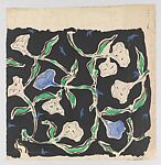 - Title: Textile Design with a Pattern of White and Blue Flowers on a Black Ground