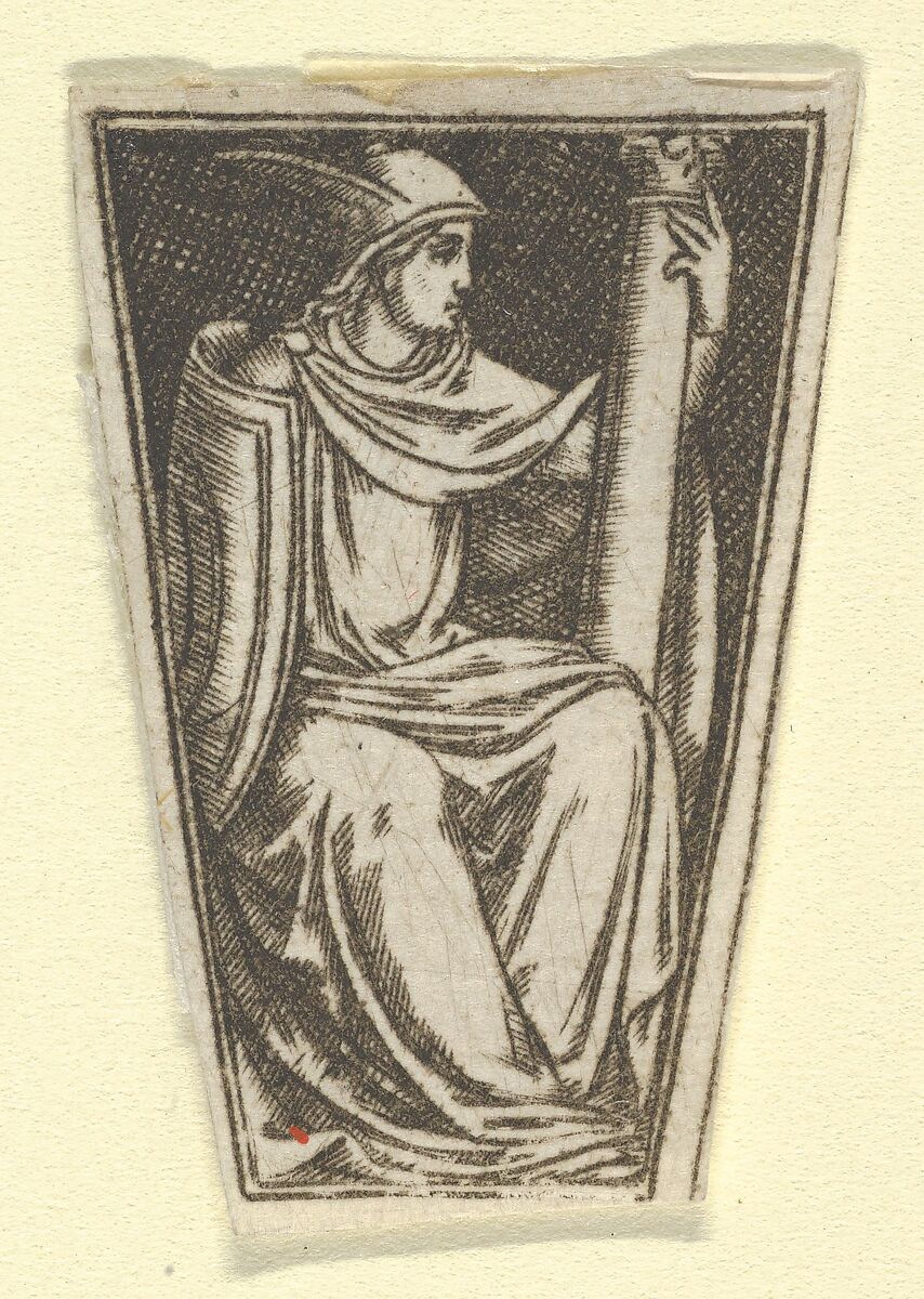 - Title: The cardinal virtue of Fortitude represented by a seated woman, her right hand on a column (possibly a modern impression)