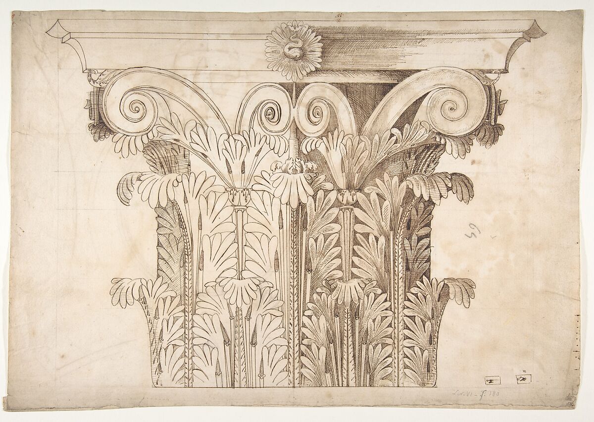 - Title: Unknown, Corinthian capital, elevation (recto) Unknown, Corinthian capital, plan diagram and detail (verso)