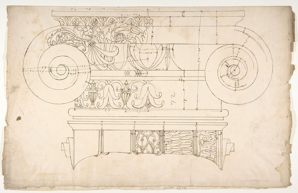 - Title:Unidentified, Ionic capital, elevation, front and side (recto) Unidentifed, Ionic capital, section, detail; Ionic capital, elevation, detail (verso)