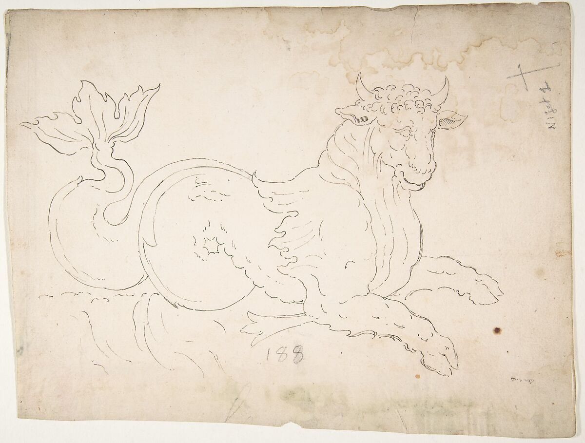 - Title:Marine bull, detail (recto) blank (verso)