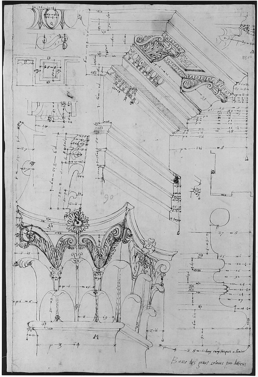 - Title: Pantheon, entablature and column pilaster capital, projection; rosette, details; capital profile; base, profile; pilaster, plan (recto) Pantheon, rectangular niche, perspective (verso)