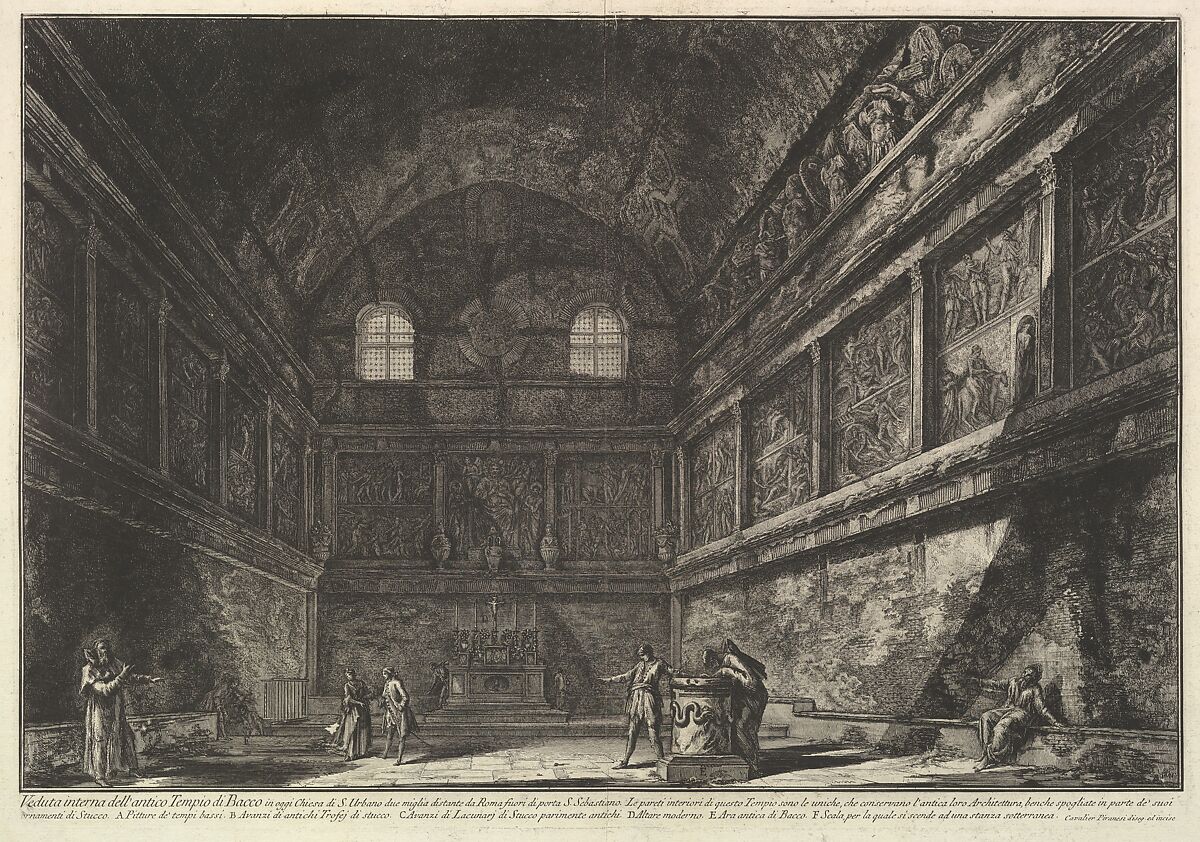 - Title: Interior view of the ancient Temple of Bacchus, now the church of S. Urbano, two miles from Rome..., from Vedute di Roma (Roman Views)