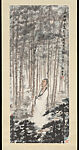 Fu Baoshi did not devote himself fully to painting until after 1939, when he settled in the wartime capital of Chongqing, Sichuan. There, poverty-stricken and struggling to support a growing family, he painted with a fierce determination to succeed. Often, he created images of himself in the guise of tragic historical figures who were not adequately appreciated during their lifetime. In this work, dating to the early 1940s, he depicts himself lost in a thick grove of trees and bamboo. His inscription quotes lines from a poem by Du Fu (712–770):