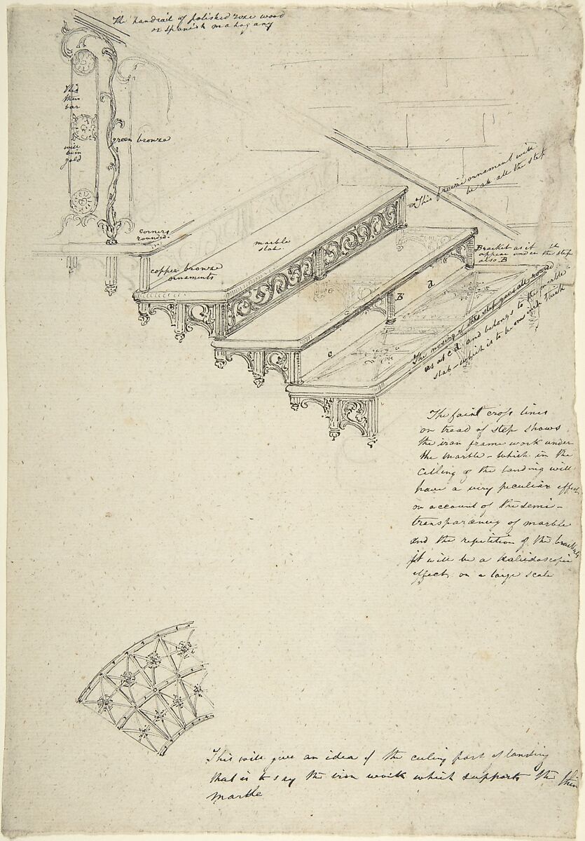 - Title: Drawing for an iron stairway with marble treads