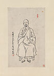 This image, dated to the first day of the Chinese New Year in 1943, pays homage to Feng's mentor, Hongyi, who died in 1942. Hongyi, whose secular name was Li Shutong, was the earliest Chinese artist to receive training in Western painting in Japan and one of the pioneers in modern art education. Li was also the first Chinese artist to explore modern woodcut techniques, introducing graphics into Chinese newspapers and stressing the importance of teaching commercial art. Disillusioned by the corruption and chaos he saw around him, Li became a Buddhist monk in 1918. Feng's portrait is drawn in a starkly simple outline style in which the lines function descriptively rather than calligraphically. Hongyi is shown looking straight at the viewer, his openness and goodness reflected in his warm smile and relaxed pose.