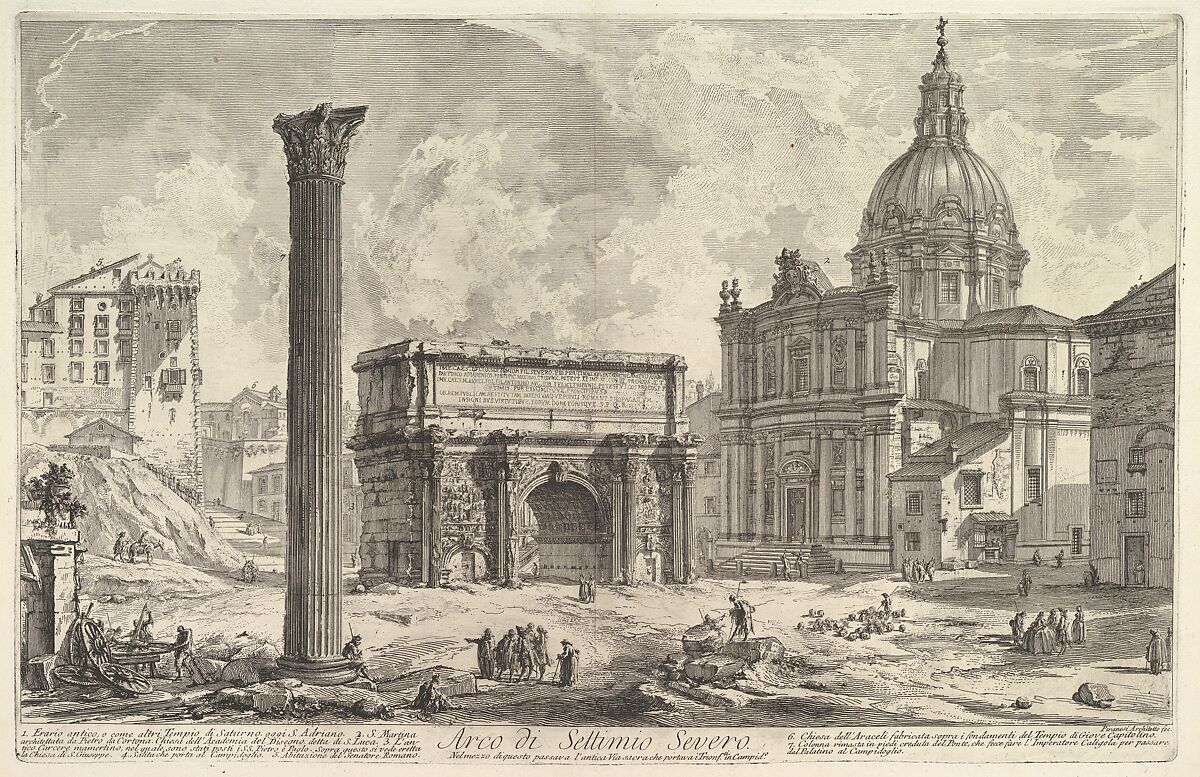 - Title: The Arch of Septimius Severus, with the Church of S. Martina on the right (Arco di Settimio Severo), from "Vedute di Roma"