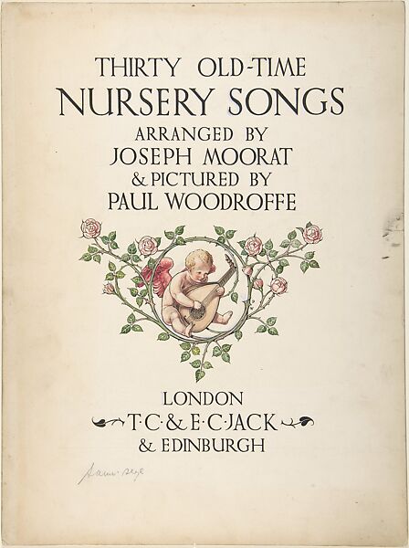- Title: "Thirty Old-Time Nursery Songs, Arranged by Joseph Moorat & Pictured by Paul Woodroffe"―title page design