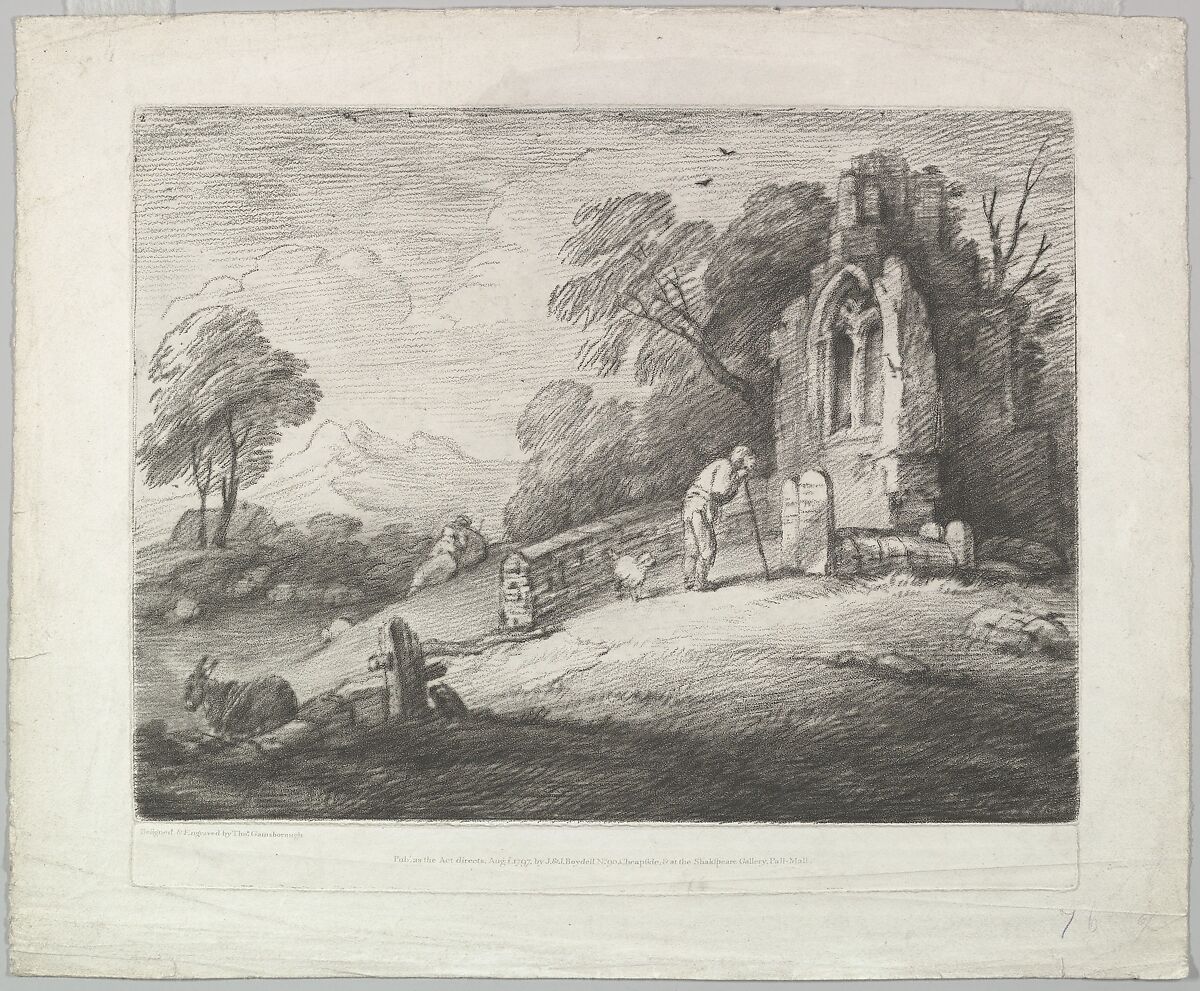 - Title:Wooded Landscape with a Peasant Reading a Tombstone, Rustic Lovers and a Ruined Church