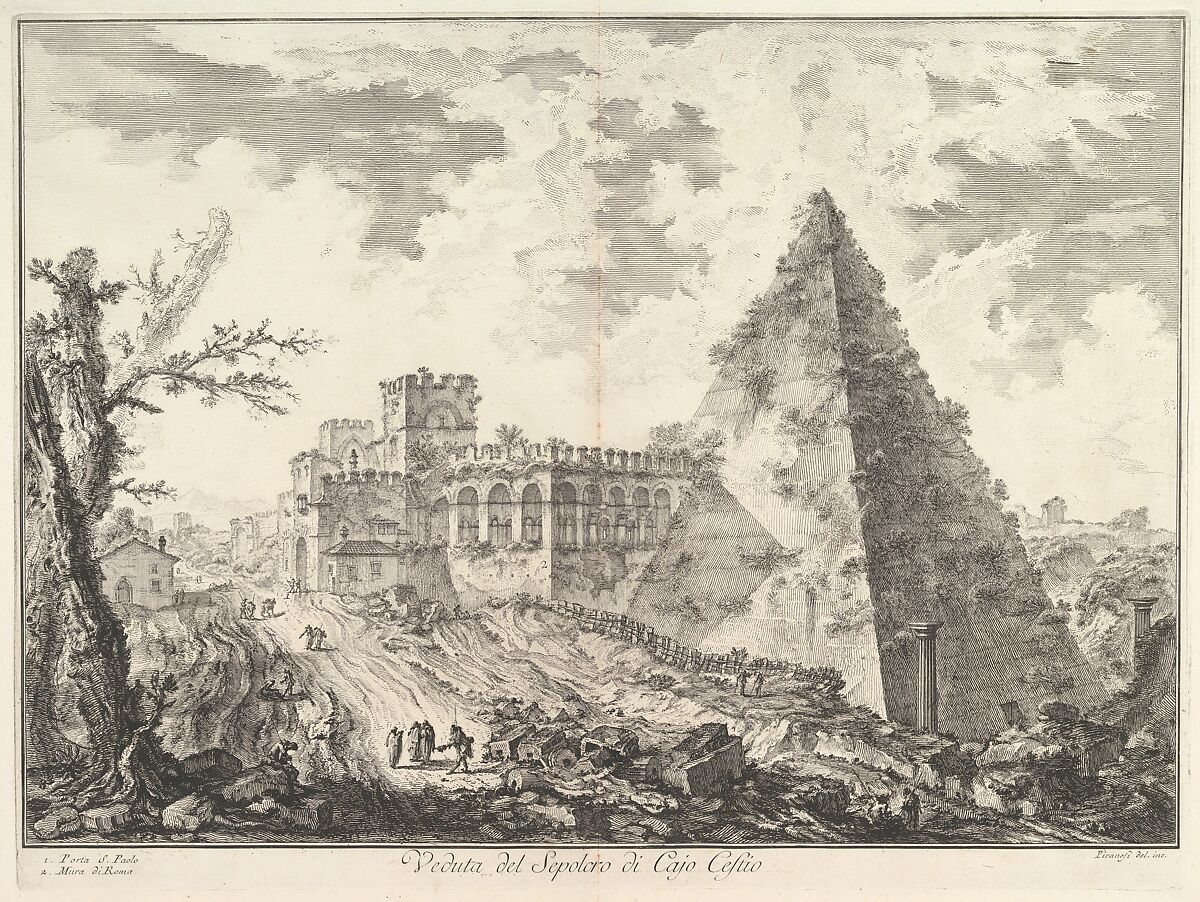 - Title: The Pyramid of Caius Cestius, with the Porta S. Paolo and adjoining road (Veduta del Sepolcro di Cajo Cestio), from "Vedute di Roma"