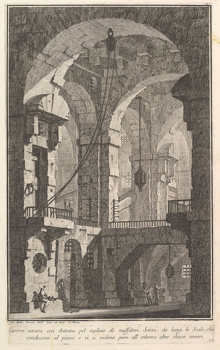 - Title: Dark prison with a courtyard for the punishment of criminals... (Carcere oscura con Antenna pel suplizio dè malfatori...), from "Prima Parte di Architettura, e Prospettive"