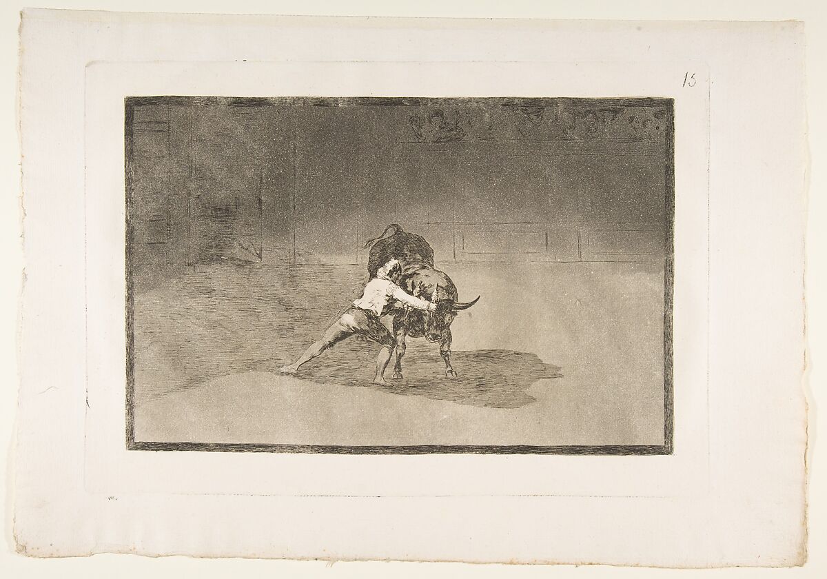 Plate 15 from "La Tauromaquia": The famous Martincho places the banderillas playing the bull with the movement of his body