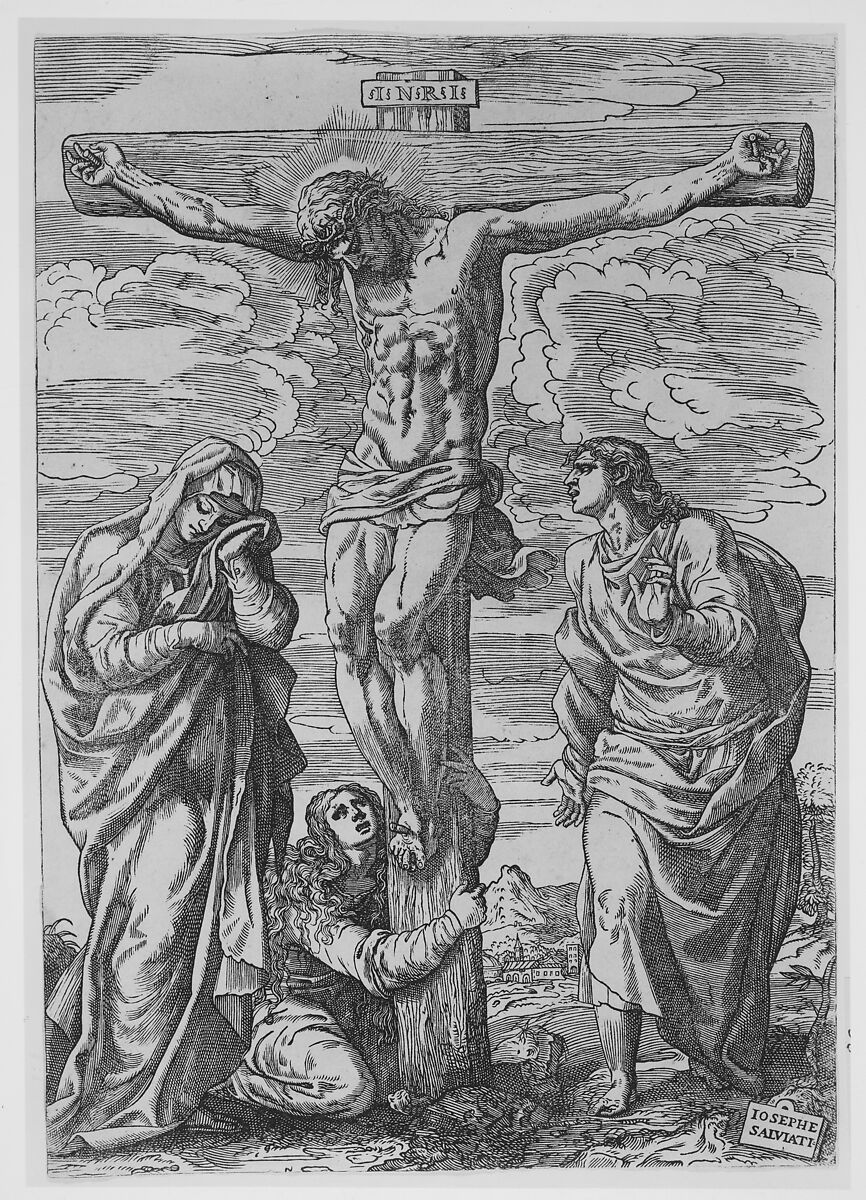 The artist Giuseppe Salviati had been a student of the famed Mannerist Francesco Salviati (1510-1563), from whom he took his name, replacing "Porta." Giuseppe designed and quite possibly cut the block for this signed woodcut, which may be related to his painting of the same subject once in the Palazzo Ducale, Venice. On June 30, 1556, Giovanni Ostaus was granted the privilege to publish both this woodcut, which was initially issued with surrounding text, and a needlework pattern book, for which the Lucretia, displayed nearby, served as a frontispiece.