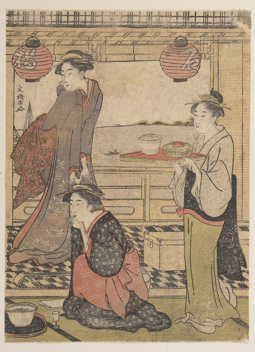 - Medium:Right-hand sheet of a triptych of woodblock prints; ink and color on paper