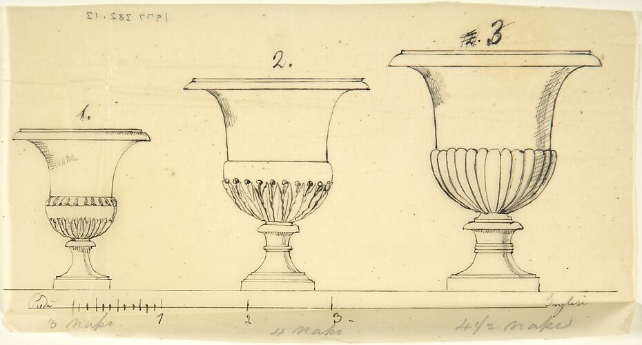 - Medium: Graphite, with inscriptions in pen and brown ink on tracing paper